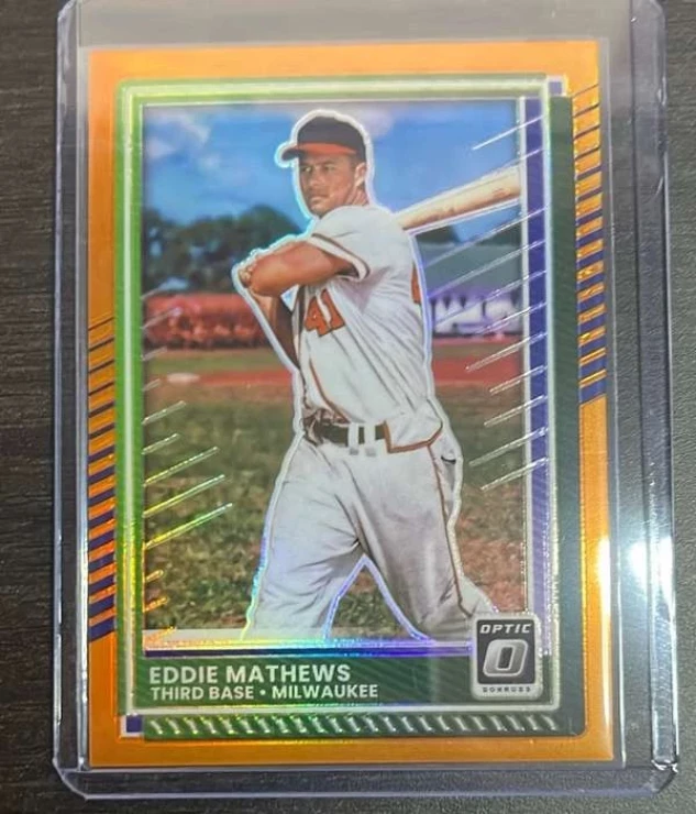 This is a nice example of a 2025 Donruss - Optic Orange #67 Eddie Mathews