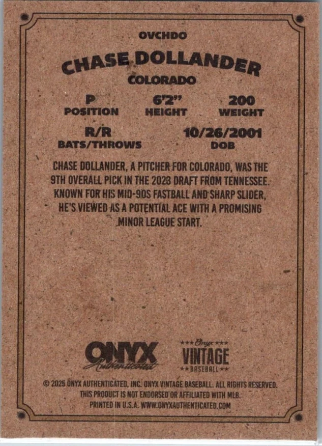 This is a nice example of a 2025 Onyx Vintage #OVCHDO Chase Dollander