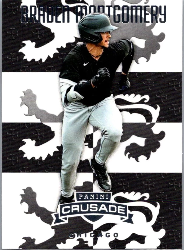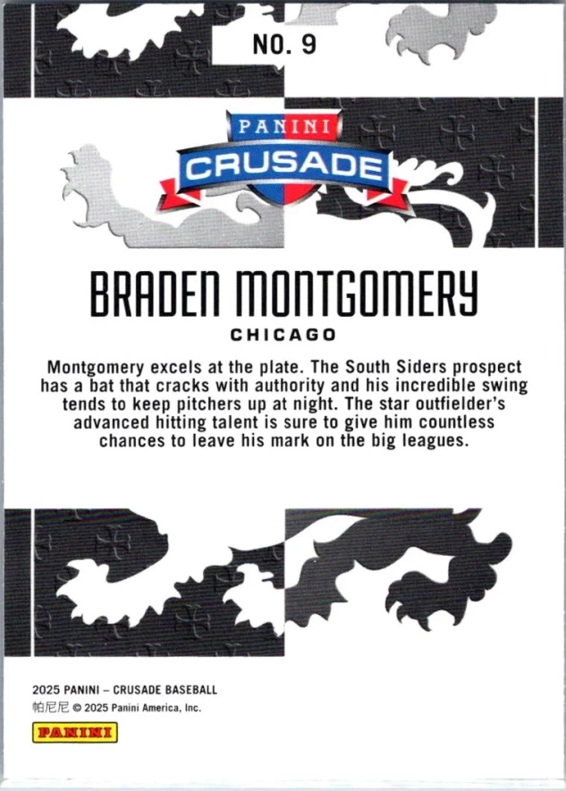 This is a nice example of a 2025 Panini Crusade #9 Braden Montgomery