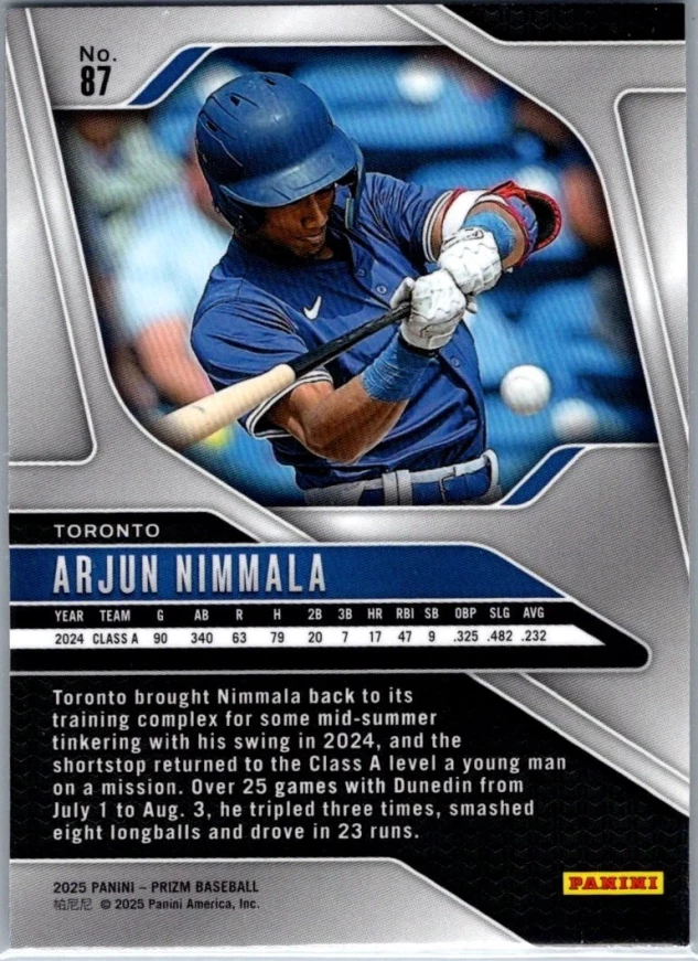 This is a nice example of a 2025 Panini Prizm #87 Arjun Nimmala