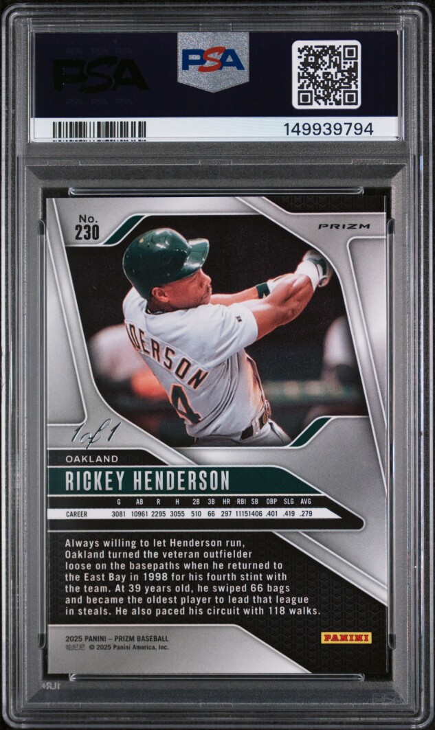 2025 Panini Prizm Rickey Henderson Gold Vinyl 1/1