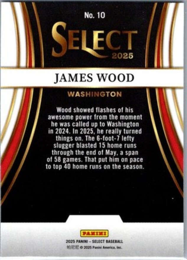 This is a nice example of a 2025 Panini Select #10 James Wood Turbo Charged