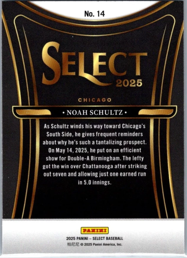 This is a nice example of a 2025 Panini Select #14 Noah Schultz Phenomenon