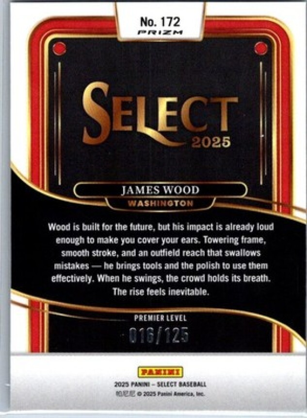 This is a nice example of a 2025 Panini Select #172 James Wood Bronze Prizms