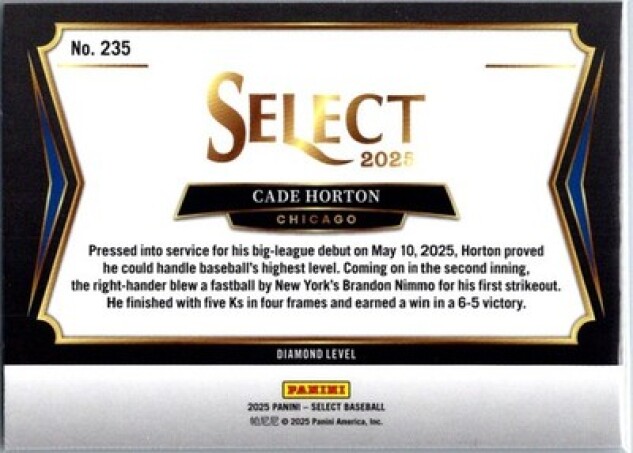This is a nice example of a 2025 Panini Select #235 Cade Horton