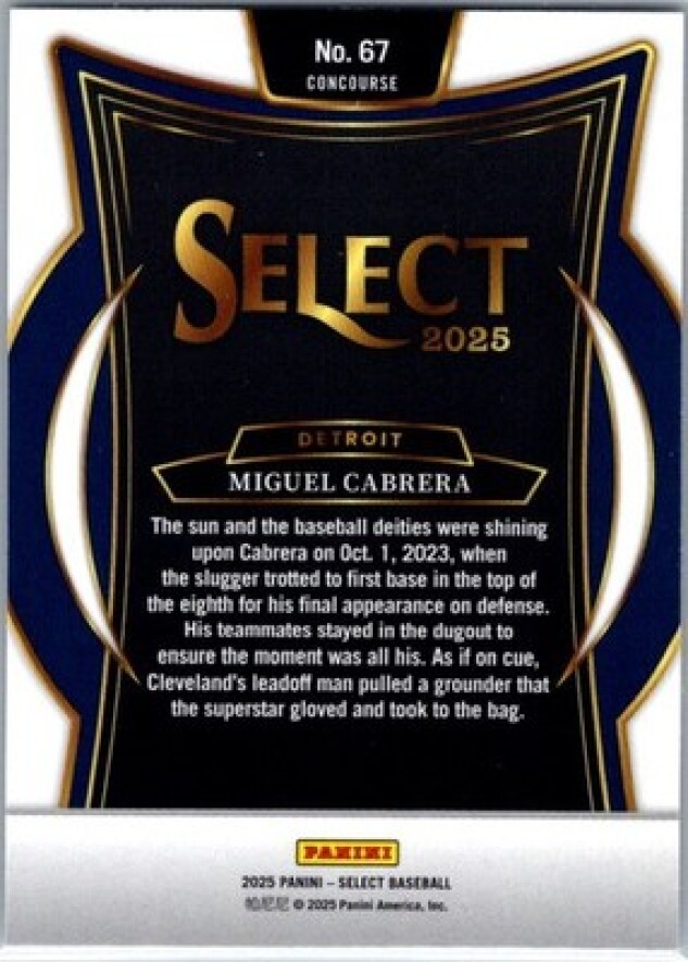 This is a nice example of a 2025 Panini Select #67 Miguel Cabrera