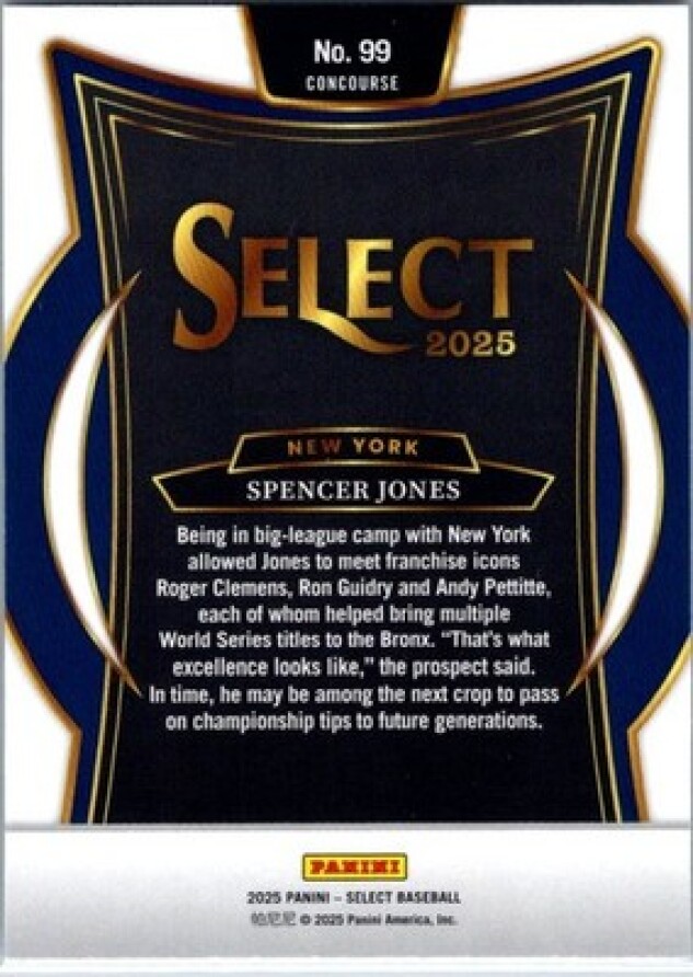 This is a nice example of a 2025 Panini Select #99 Spencer Jones
