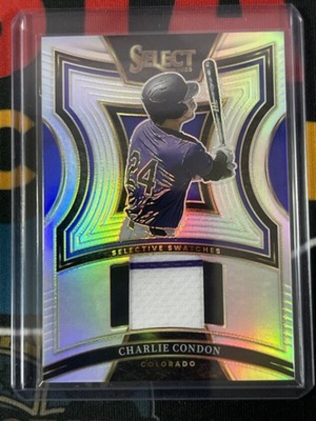 This is a nice example of a 2025 Panini Select #SS-CC Charlie Condon Select Swatches Prizm