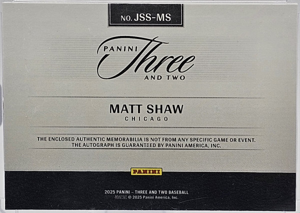 2025 Panini Three And Two Matt Shaw Jersey Swatch Signatures 22/32