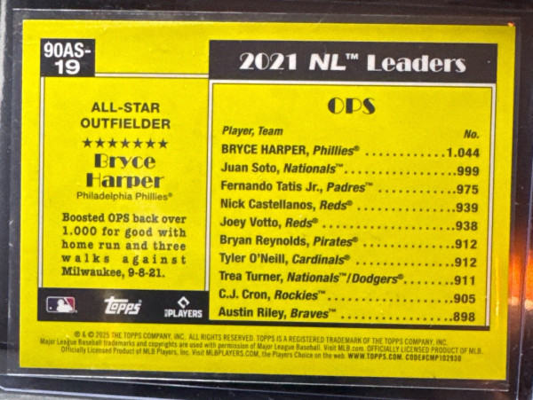 2025 Topps 1990 Topps All Star #90AS-19 Bryce Harper Philadelphia Phillies