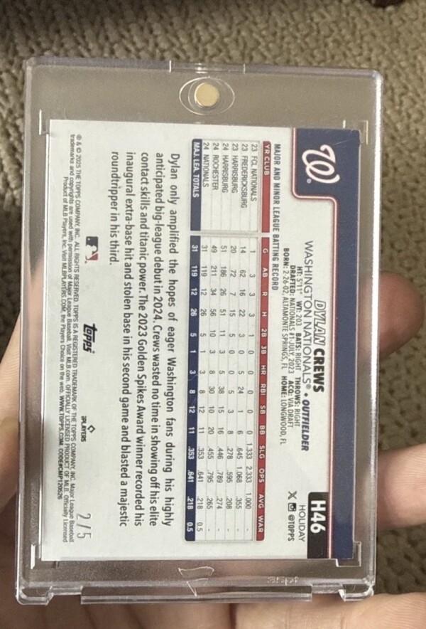 2025 Topps /5 Holiday Dyl​an Crews RC GREEN SPARKLE SSP Rookie Nationals