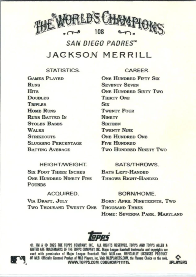 In 2025 Jackson Merrill played for the San Diego Padres.