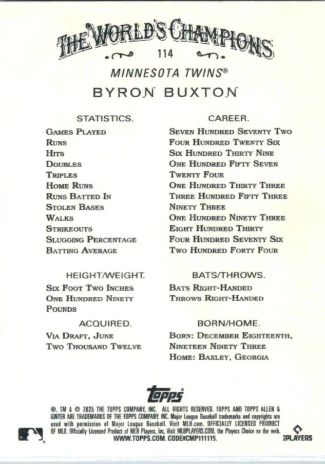 This is a nice example of a 2025 Topps Allen & Ginter #114 Byron Buxton