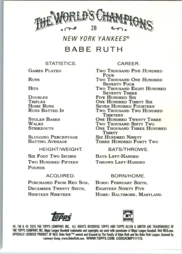 2025 Topps Allen & Ginter #28 Babe Ruth