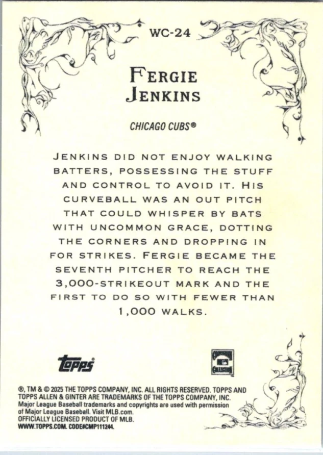 This is a nice example of a 2025 Topps Allen & Ginter #WC-24 Fergie Jenkins Wicked Curves