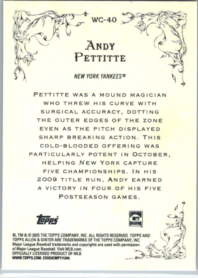 This is a nice example of a 2025 Topps Allen & Ginter #WC-40 Andy Pettitte Wicked Curves