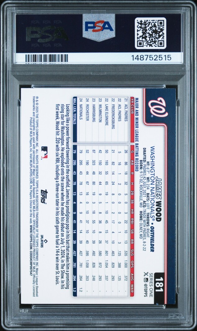 You are purchasing a 2025 Topps James Wood #181 Silver Crackle Foilboard RC PSA 9. Thank you for looking.