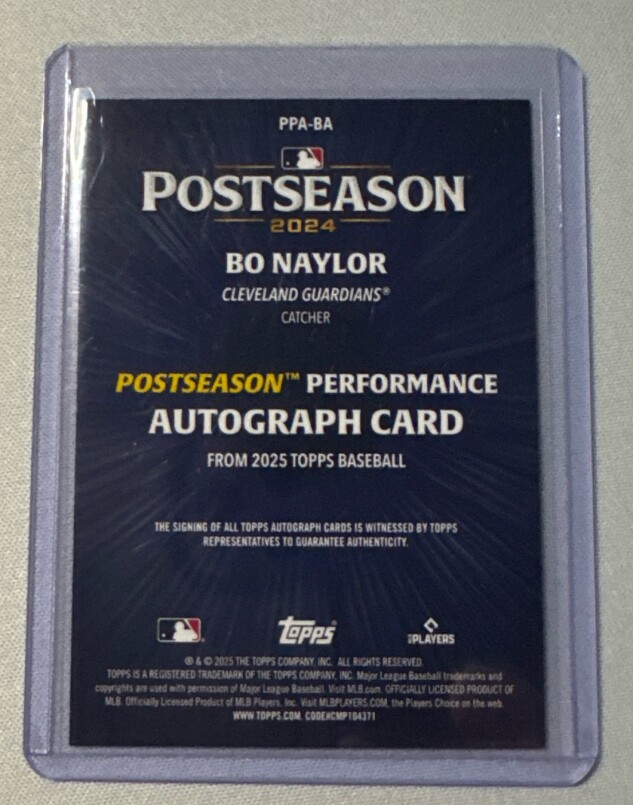 2025 Topps Bo Naylor PPA-BA Postseason Performance Autograph Guardians /48