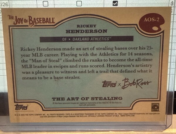 2025 Topps Bob Ross Rickey Henderson The Art Of Stealing /99