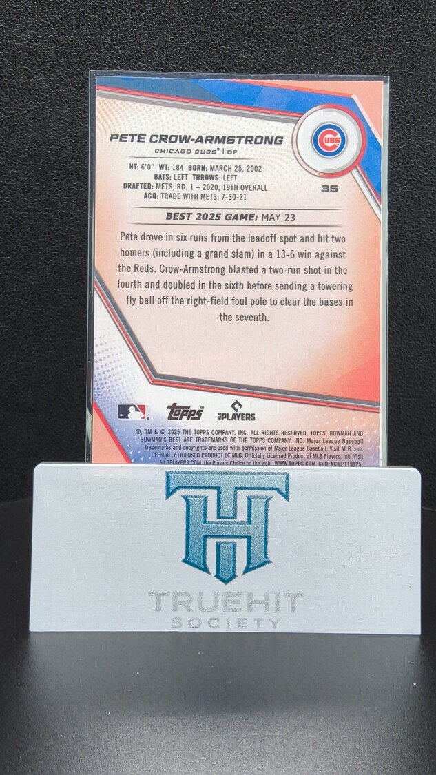 You are purchasing a 2025 Topps Bowman's Best Pete Crow-Armstrong #35. You will receive the exact item in the photographs. Thank you for looking.