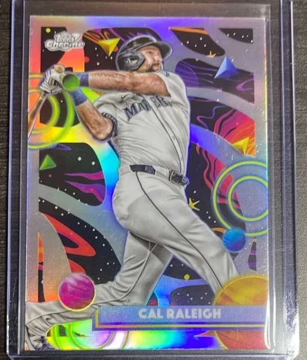 This is a nice example of a 2025 Topps Chrome Cosmic - Refractor #6 Cal Raleigh