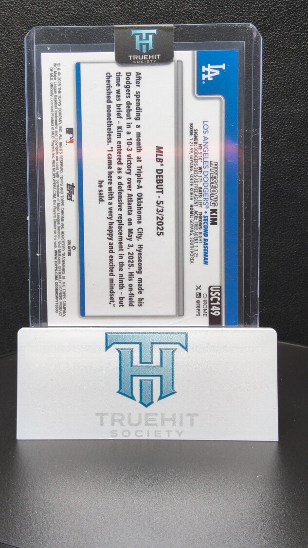 You are purchasing a 2025 Topps Chrome Hye-Seong Kim #USC149 RC. You will receive the exact item in the photographs. Thank you for looking.