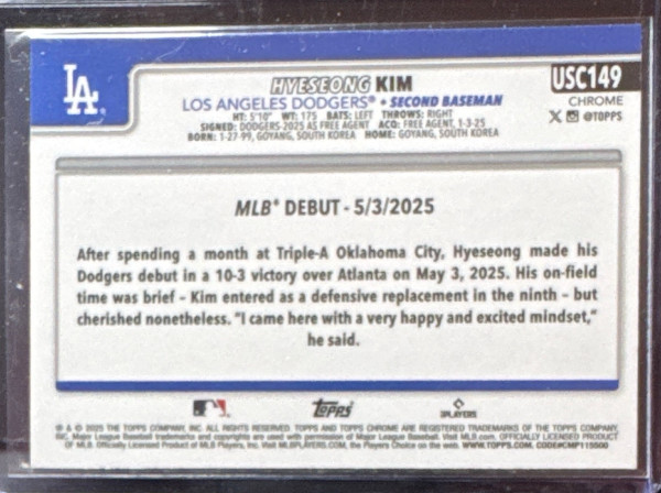 2025 Topps Chrome Update - Hyeseong Kim #USC149 - XFractor (RC)