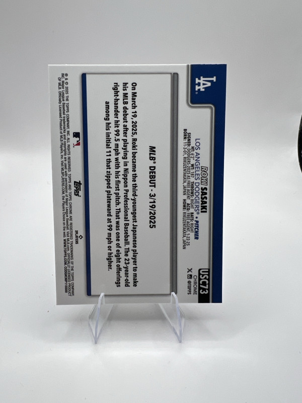 2025 Topps Chrome Update Roki Sasaki Rookie Debut Card USC73 (RC)
