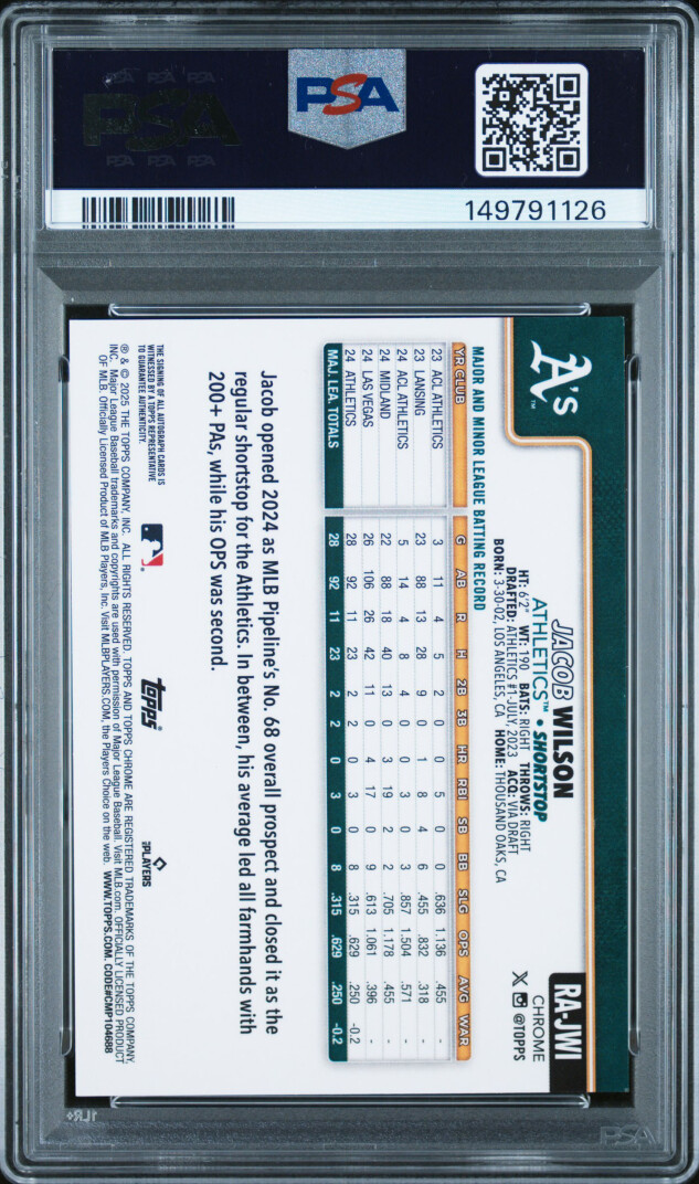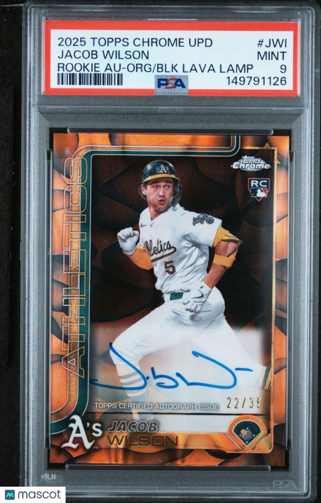 You are purchasing a 2025 Topps Chrome Update Rookie Autographs Jacob Wilson #JWI Org BLK Lava Lamp 22/35 PSA 9. You will receive the exact item in the photographs. Thank you for looking.