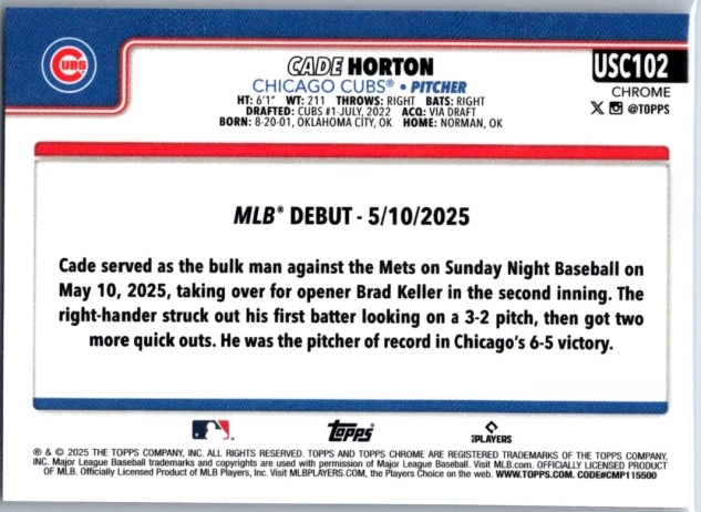 In 2025 Cade Horton played for the Chicago Cubs.