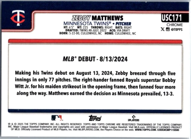 2025 Topps Chrome Update #USC171 Zebby Matthews