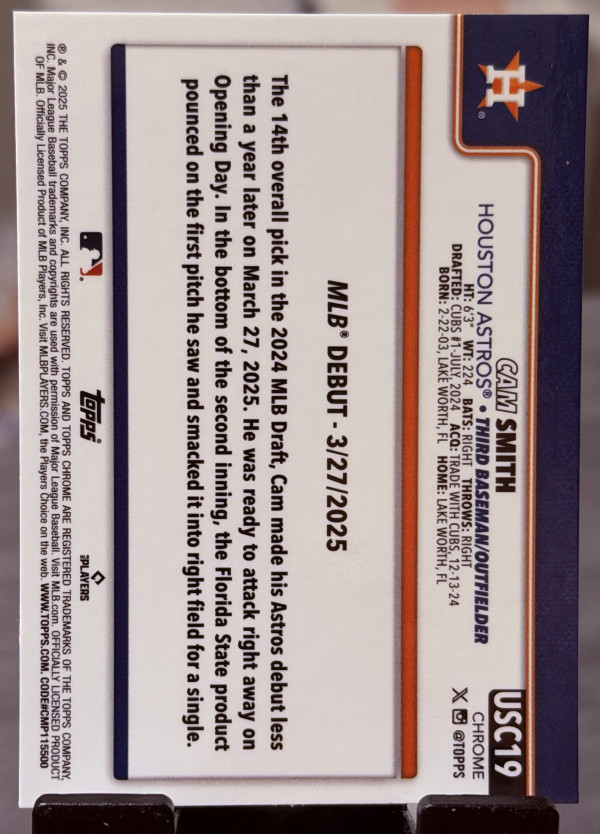 2025 Topps ChromeUpdate Series - Rookie Debut Cam Smith #USC19 Prism Refractor (RC)