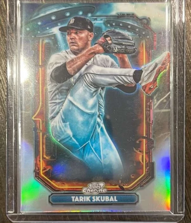 This is a nice example of a 2025 Topps Cosmic Chrome Extraterrestrial Talent Refractor #ET-20 Tarik Skubal