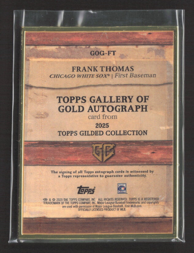 You are purchasing a 2025 Topps Gilded Collection Frank Thomas #GOG-FT Topps Gallery of Gold Autograph 14/25. You will receive the exact item in the photographs. Thank you for looking.