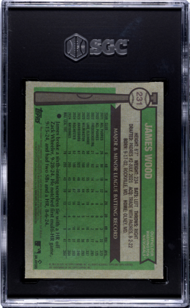2025 Topps Heritage #231 James Wood Chrome Pink Sparkle Refractor SGC 10