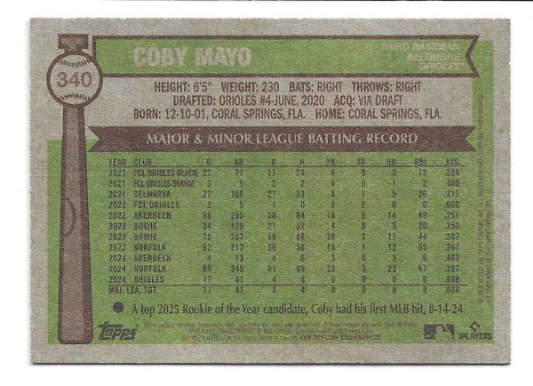 2025 TOPPS HERITAGE #340 COBY MAYO (RC)