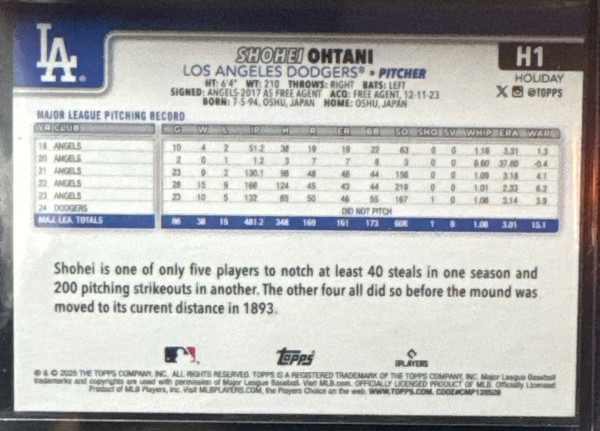 2025 Topps Holiday - Shohei Ohtani Gold Holiday Lights - Dodgers MVP - #H1