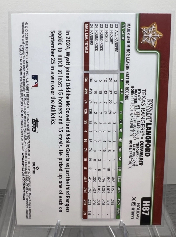 Holiday Short Print Variant. Rangers logo on back of card is replaced with Christmas Star. Shipped PWE unless worked out prior to buying.