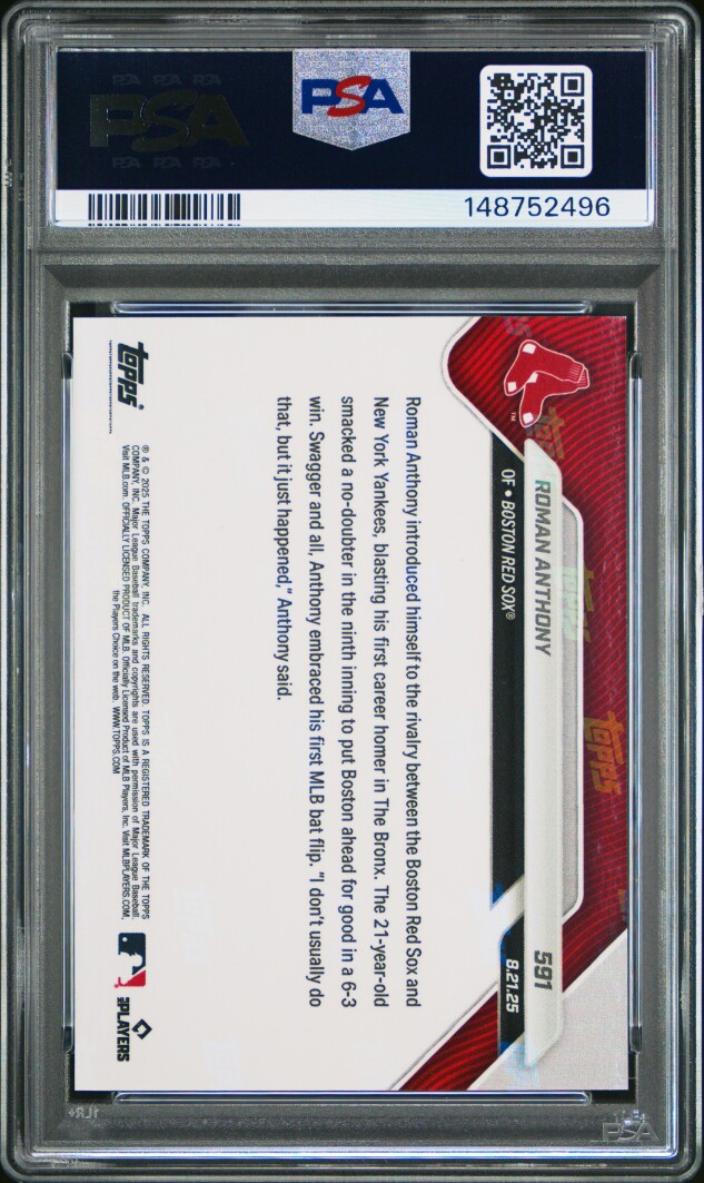 You are purchasing a 2025 Topps Now Roman Anthony #591 RC PSA 10. Thank you for looking.