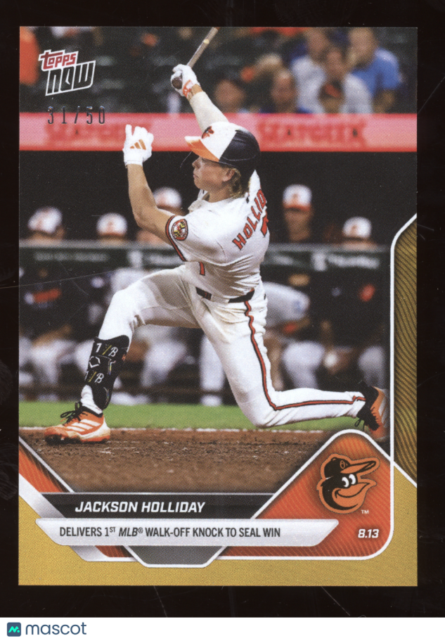 You are purchasing a 2025 Topps Now Jackson Holliday #555 Gold 31/50. You will receive the exact item in the photographs. Thank you for looking.