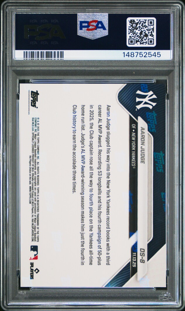 You are purchasing a 2025 Topps Now Offseason Aaron Judge #OS-8 PSA 10. Thank you for looking.