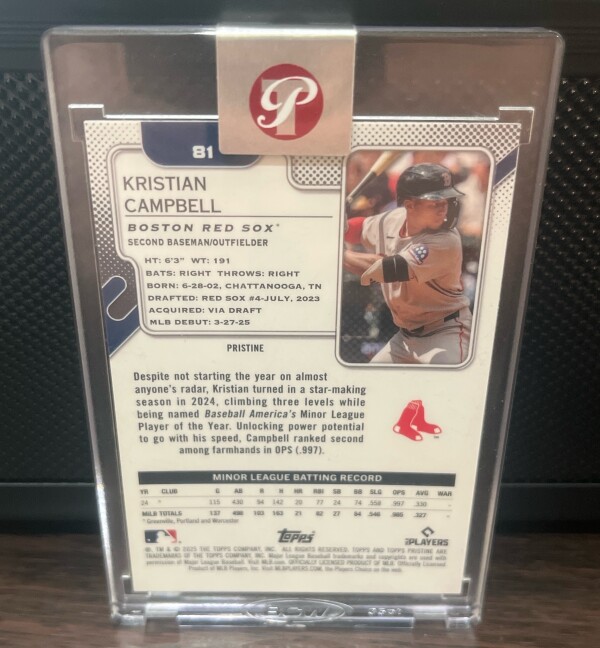 2025 Topps Pristine Kristian Campbell Rookie card Aqua parallel/199 Encased