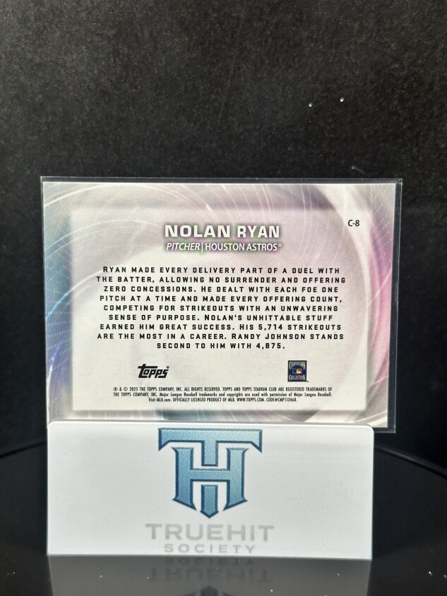 You are purchasing a 2025 Topps Stadium Club Nolan Ryan #C-8. You will receive the exact item in the photographs. Thank you for looking.