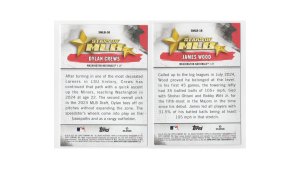Lot of (2) Washington National 2025 Topps Stars of MLB Rookie All-stars! Including James Wood and Dylan Crews. This lot is great for building singles or your own lots for Whatnot, online sales, or shows! All orders $100+ receive free shipping. Thanks for visiting Normans All-Stars MCP shop!