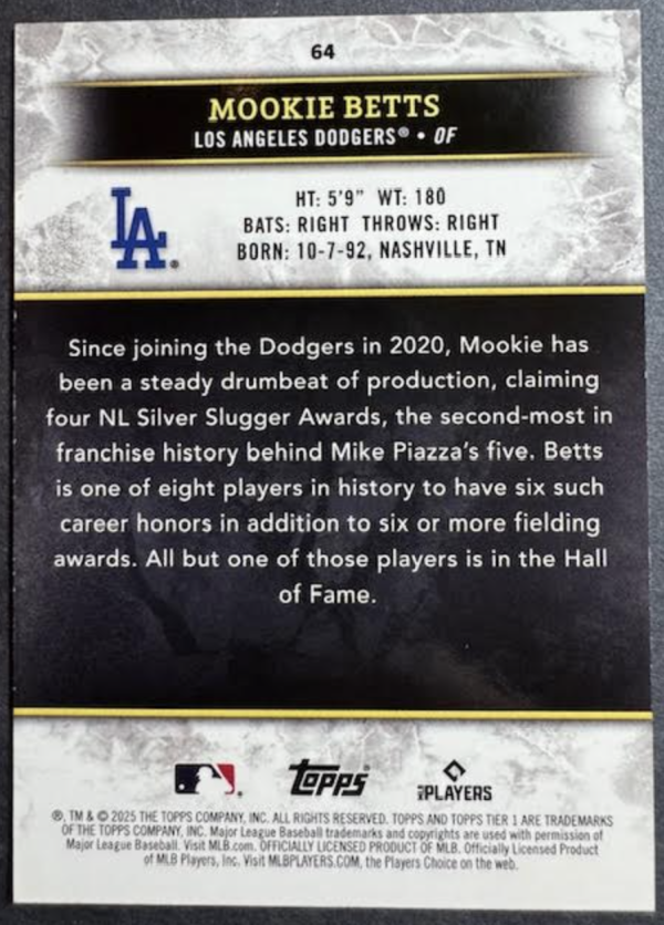 2025 Topps Tier One Mookie Betts #64 Green Foil /40 World Series Champ 🔥 Cheap