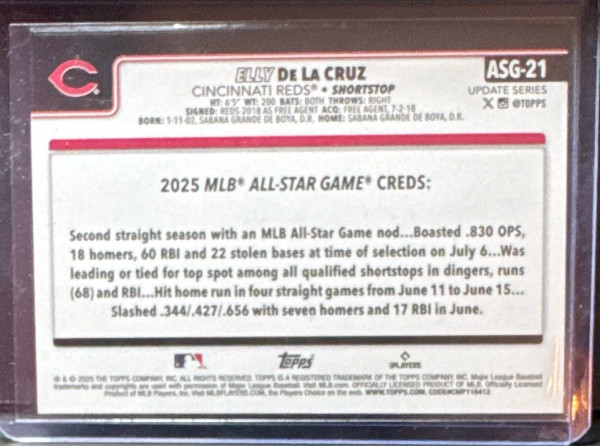 2025 Topps Update Series All Star Game Foil - #ASG-21 Elly De La Cruz Reds