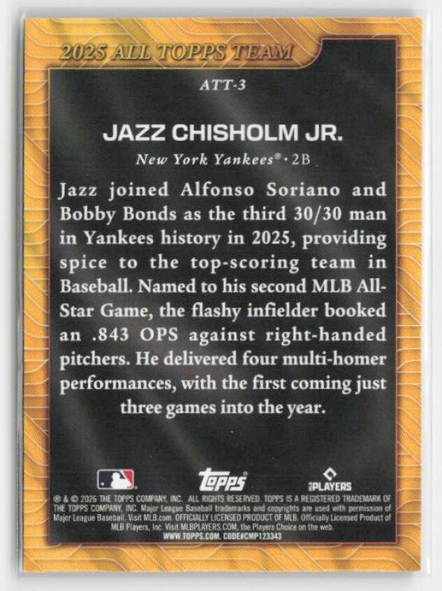 2026 Topps #ATT-3 Jazz Chisholm Jr. 2025 All Topps Team