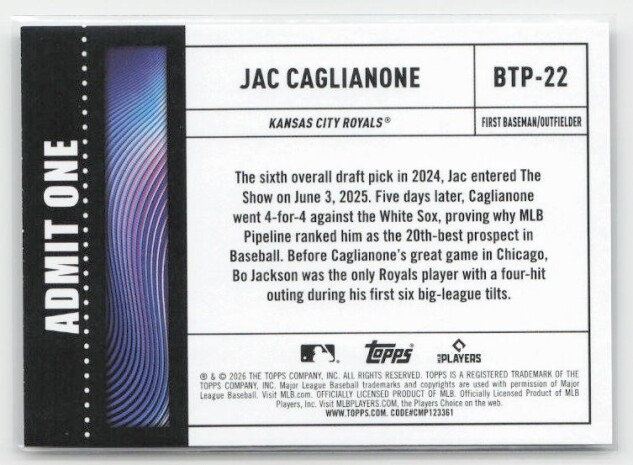 2026 Topps #BTP-22 Jac Caglianone Big Ticket Players