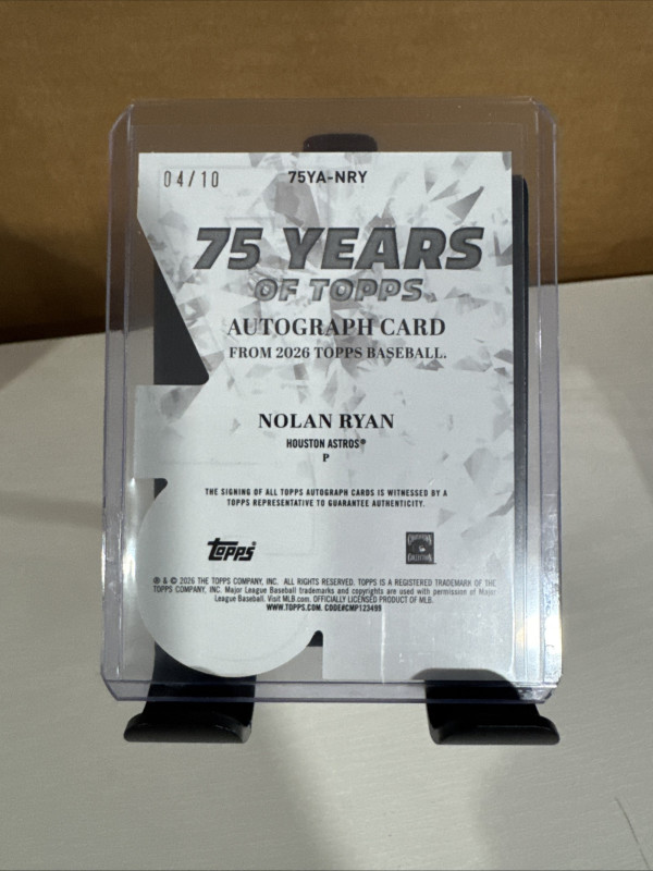 2026 Topps Series 1 75th Anniversary Nolan Ryan ON CARD AUTO /10