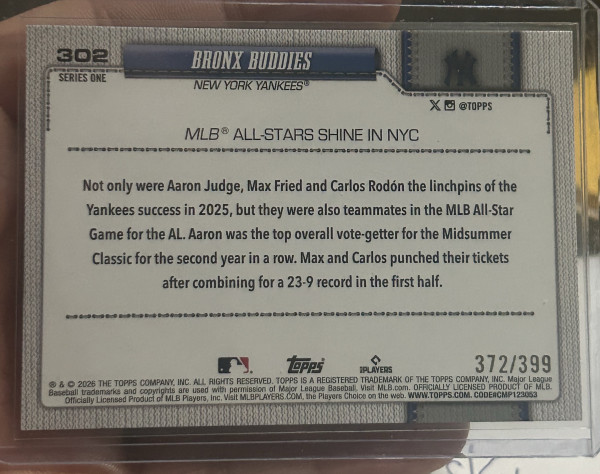 2026 Topps Series 1 Gold Sand Glitter /399 Bronx Buddies Judge,Fried,Rodon